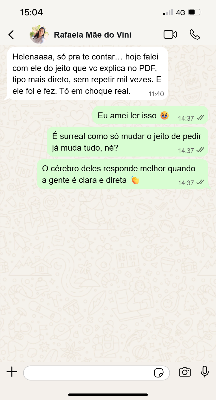 Todo o conteúdo está em um PDF visual, prático e transformador. Você entende o porquê dos comportamentos, aprende o que fazer no lugar do grito e tem exemplos reais para aplicar com segurança sem precisar estudar horas nem decorar teoria.